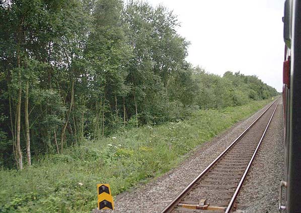 The site of the first Barton Moss Station looking west towards Liverpool from the south side of the line in July 2006 Photo by Bevan Price