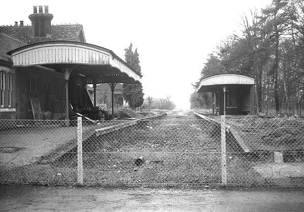 Baynards station looking north from the up platform c1966, shortly after track lifting. Both platforms had a substantial canopy but the main buildings were on the up side with only a waiting room on the down platform.