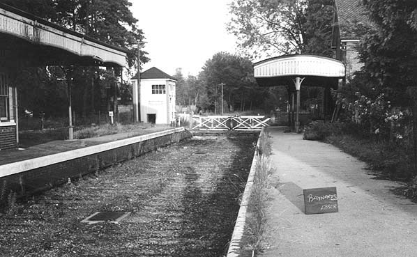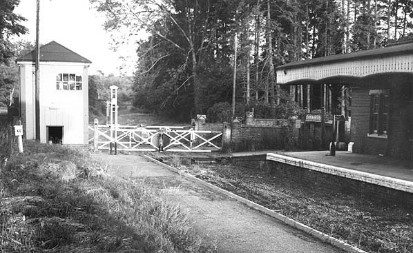 Baynards station looking south from the down platform a the Station Road level crossing and signal box c1966, shortly after track lifting.