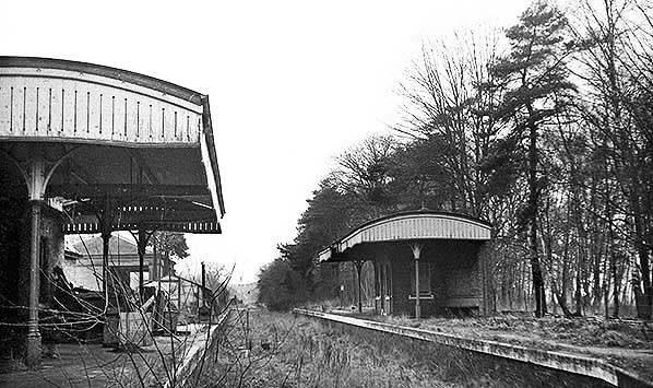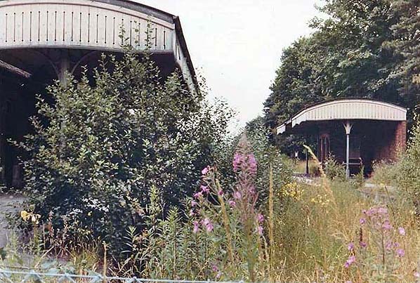 Photo by John Clark ![]() In December 1972 the station was derelict but largely intact. Undergrowth is beginning to take over the platforms and track bed.
