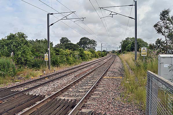 General view of the site of Beal station, looking south-east from the level crossing in July 2015.