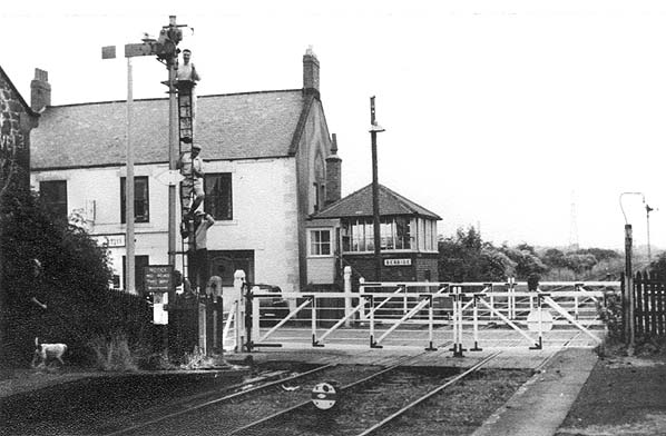 Looking north-west towards the level crossing and signal box at Bebside from the up platform