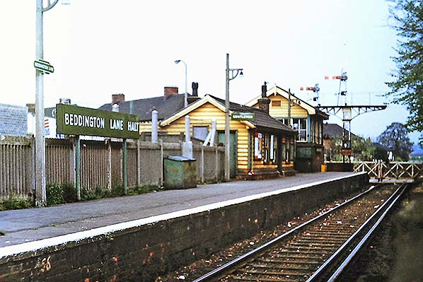 Beddington Lane Halt seen from the footpath running alongside the track in 1977.