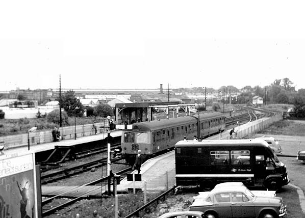 ![]() ![]() Bedford St Johns station looking south-west in the 1970s. A DMU has arrived from Bletchley. It will continue under London Road and reverse into the other platform ready for the return journey. Photo by John Law from his UK & Elsewhere Photos web site ![]()