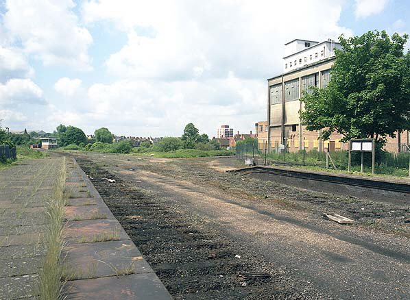 Bedford St. Johns station looking south-west in June 1985. The bushes in the middle distance are in the trainable with Bedford St. John signal box at the west angle.