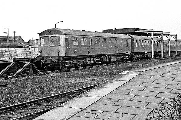 A Class 105 DMU is seen at Bedford St Johns station in March 1978.