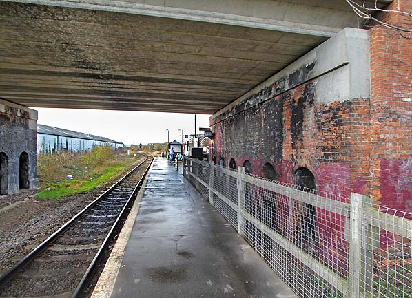 The new Bedford St Johns station looking north towards Bedford (formerly Bedford Midland) station in March 2014.