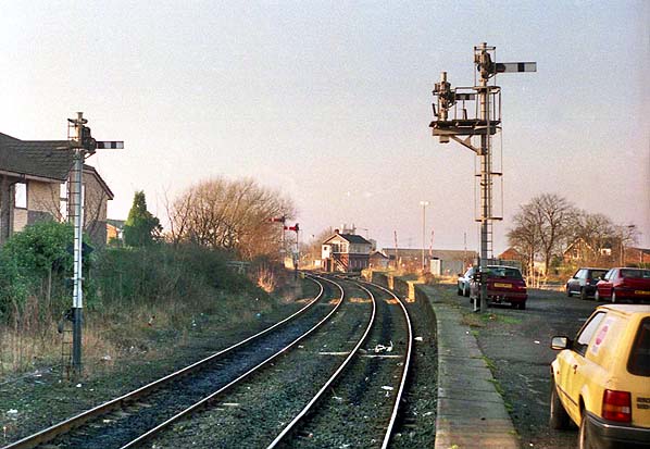 Looking north-west along the single platform at Bedlington station in January 1998.
