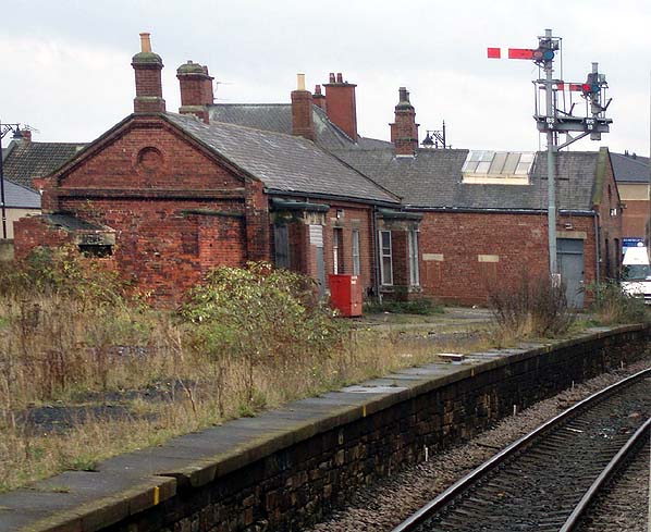 ![]() The single platform at Bedlington station, seen from the passing Branch Line Society 'Tour to North Blyth' (from Finsbury Park) railtour on 8 November 2008.