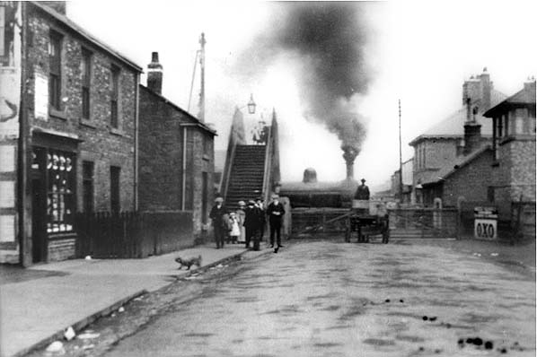 ![]() A southbound train draws out of Bedlington and over the level crossing in the