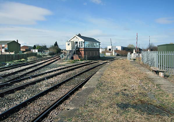![]() Bedlington station looking north-west in March 2009. The Morpeth line is to the left with the Ashington and North Blyth line to the right.