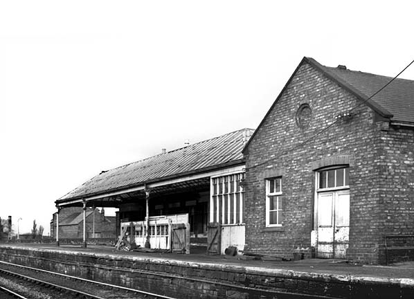 In January 1968 the main building at Bedlington station is little changed since closure, and the platform verandah with a glazed screen at the near end is still in place.