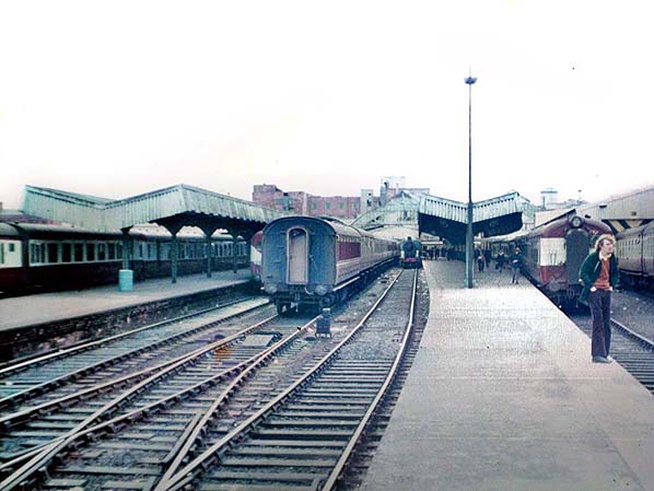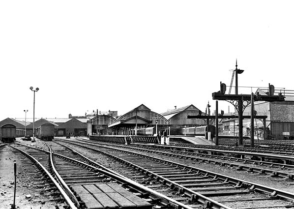 Belfast York Road looking south in 1969. After the Second World War the station lost its train-shed roof and canopies were erected along the platforms.