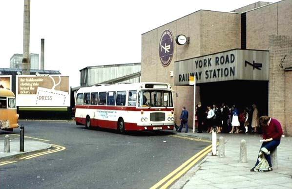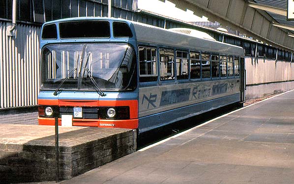 A British Leyland rail bus seen at Belfast York Road in 1986. The rail bus had originally operated in England experimentally.