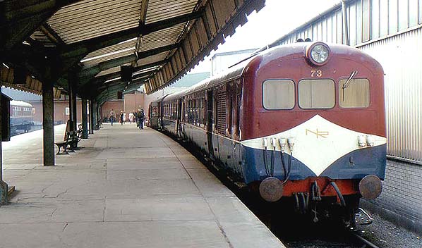 An NIR DMU number 73 is seen at Belfast York Road waiting to depart on a Larne service