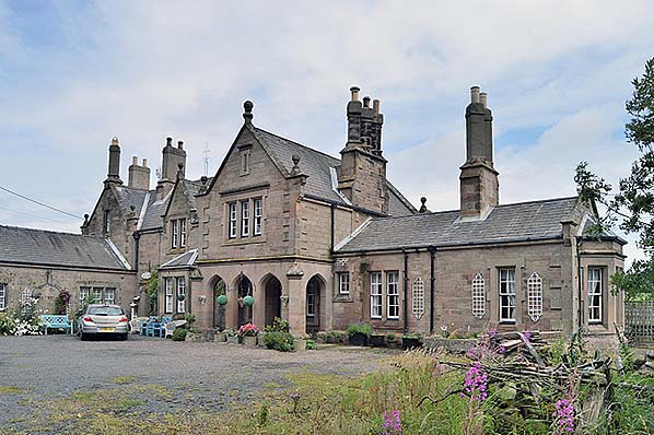 ![]() The forecourt elevation of Belford station looking north-east in May 2009. As befits the listed building it is well-presented. The retention of the mullions and the window glazing bars contributes much to the pleasing external appearance. If the station reopens this building is unlikely to have any practical role, as there will probably be no staffed facilities and, in any case, it is in private use.