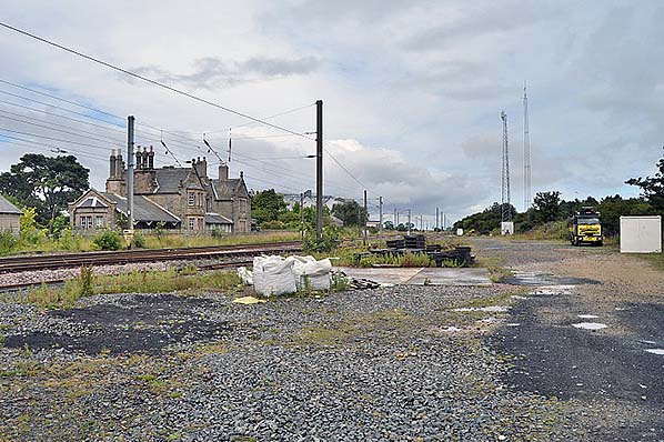 Photo by Terry Callaghan ![]() Looking north-west across the extensive site of the former goods yard towards the disused Belford station’s building in July 2015. When (or if) the passenger train service is restored at Belford the new platform is likely to be on the loop line just right of centre of the photograph.