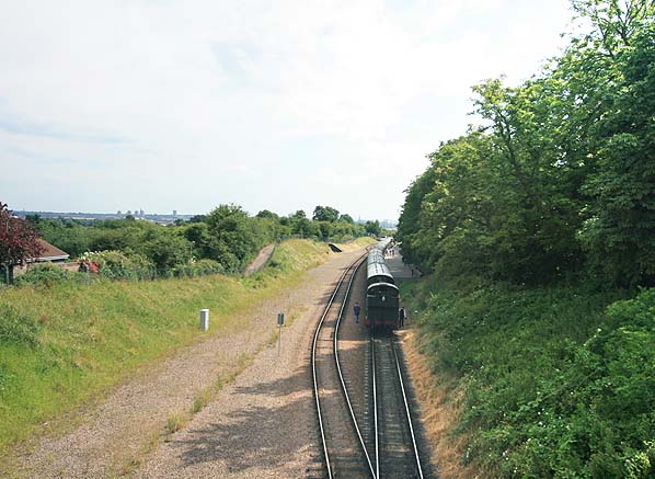 The site of Belgrave & Birstall Station seen from Station Road in June 2006. The train is standing in Leicester North Station.