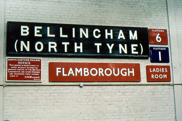 Bellingham station sign at the National Railway Museum in York (10.1975)