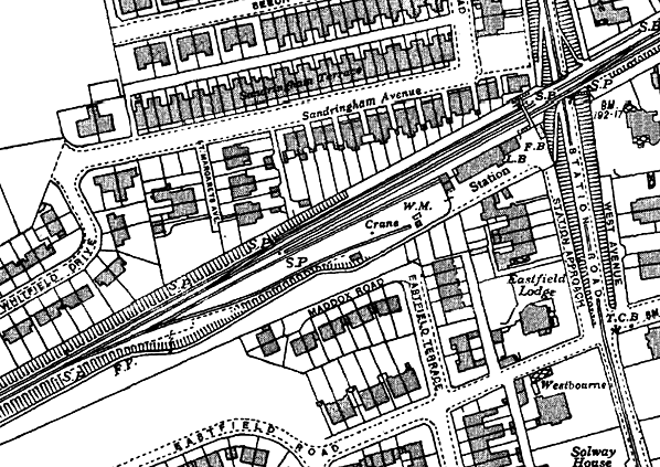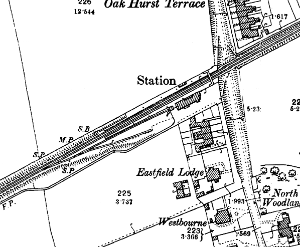 A 3-ton crane and two goods sidings, entered from the west, were provided behind the up platform. These facilities were closed on 14 August 1967.