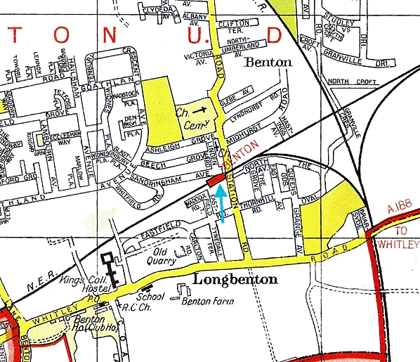The Ordnance Survey map published in1859 showed what would become ‘Station Road’ as a country lane with no buildings close to the site where Benton (2nd) was to open. The nearest building of note was Long Benton parish church, now dedicated to St Bartholomew (St Andrew’s until 1791). The map of 1897 shows only a few large houses nearby, but by 1916 urban development, with terraced, detached, and semi-detached of various qualities surrounded the station.