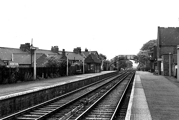 A general view of Benton station, looking north-east from the up platform in July 1969. By this time the electric third rails had been removed.