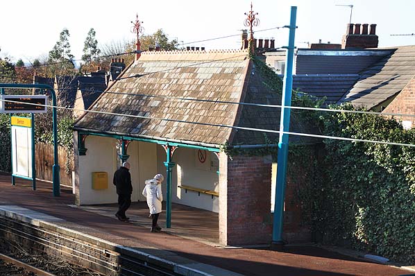 Benton station in November 2011. The waiting shed on the north-west (up) platform has, thankfully, been retained for use in the Metro era. The timber-and-glass front has been removed.