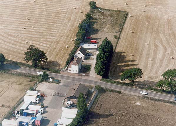 Aerial view of Billing station (above the road) and the site of the former goods yard.