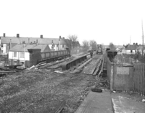 Track lifting taking place just north of Bingham Road Station in early 1984