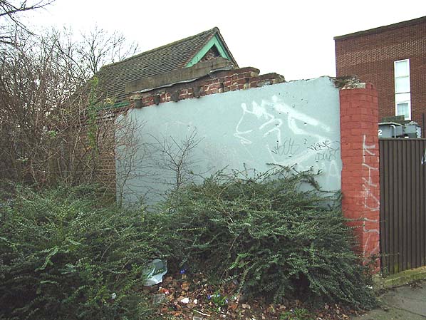 A section of wall that once formed one side of the stairs up to the platform is all that now remains of Bingham Road Station