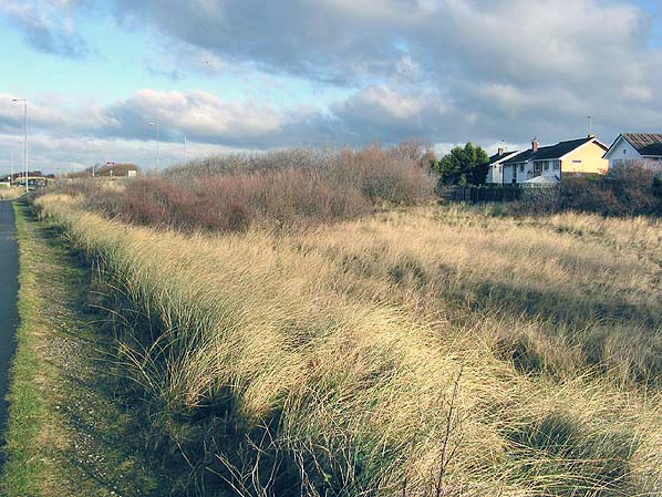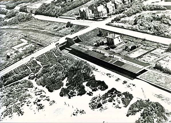 Birkdale Palace seen from the air in the 1940s. The SCLER line between Woodvale and Birkdale ran through a sand dune system and wind blown sand was a constant problem and an added expense for the railway.