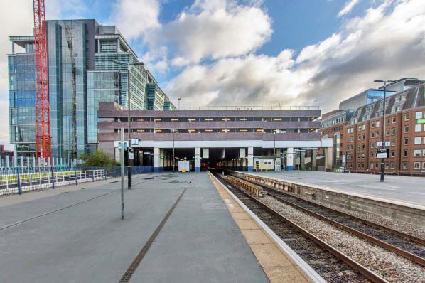 ![]() ![]() Looking north from platform 3 on 5 November 2016 with 172 334 dropping down towards the tunnels with 2V30 Whitlocks End to Kidderminster. Carriage sidings installed for Chriltern Railways can be seen to the left. Photo by Terry Callaghan ![]() The new tram stop adjacent to the main station at Snow Hill on 6 December 2016. Despite being called Birmingham Snow Hill there is no direct access to the station with passengers directed to alight at Bull Street tram stop instead, if they are wishing to make a rail connection. Photo by Terry Callaghan To see pictures of Snow Hill signage click here