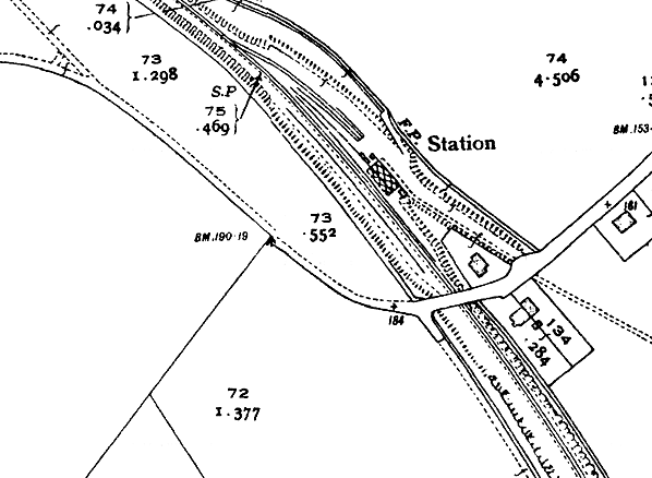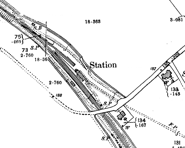 The station was at the end of a short approach road, with a rather grand stationmaster's house standing on Crows Camp Road at the top of the approach road. Map evidence suggests that it was built in the 20th century.