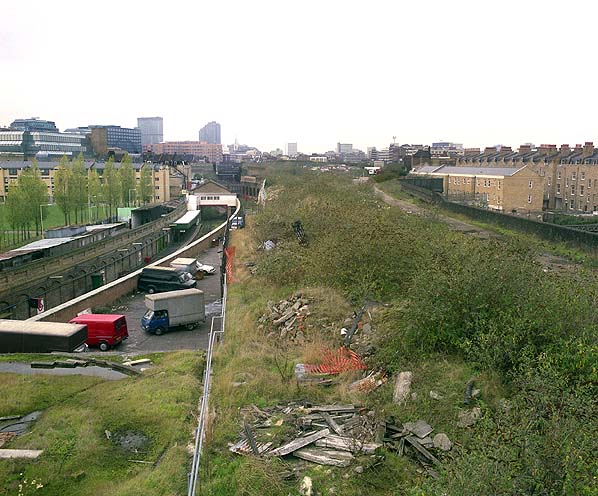 Looking towards Bishopsgate Station from the signal box in 1995. Shoreditch Station (East |London Line) can be seen on the left. Photo by Nick Catford