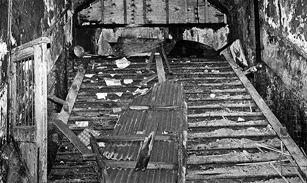 Photo by JE Connor ![]() Looking down the steps from the booking hall in 2001, the subway (now bricked up) to the bridge over the suburban lines is straight ahead. At the bottom of the steps to the right another stairway leads up to the street and more stairs to the left leads to the subway from the down Suburban platform. Straight ahead the subway to the footbridge over the Suburban lines has been bricked up.