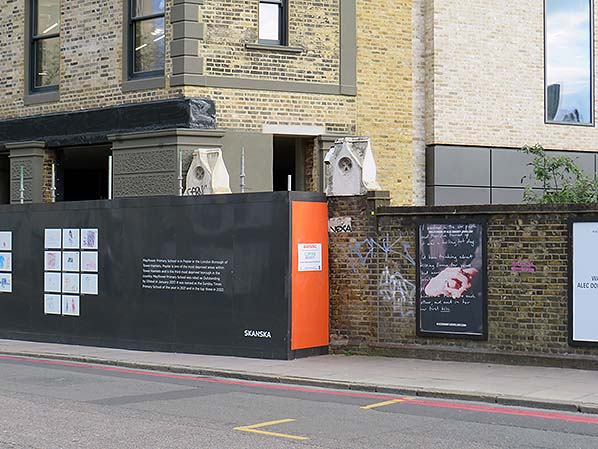 Photo by Malc McDonald ![]() Quaker Street exit from Bishopsgate (LL) station in May 2023. Part of Bishopsgate goods station still stands on the far side of the line.
