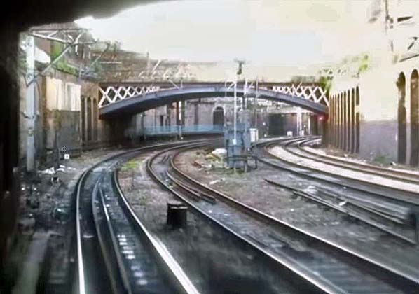 Photo by JE Connor ![]() Looking east from the cab of a Class 317 in June 2012. Shoreditch High Street bridge is above, Commercial Street bridge is in the centre. Another bridge spanned the track between the two bridges, this was the site of the Bishopsgate Low Level booking office. The Down Local platform was on the left with the Up Local and Down Main island platform in the centre.
