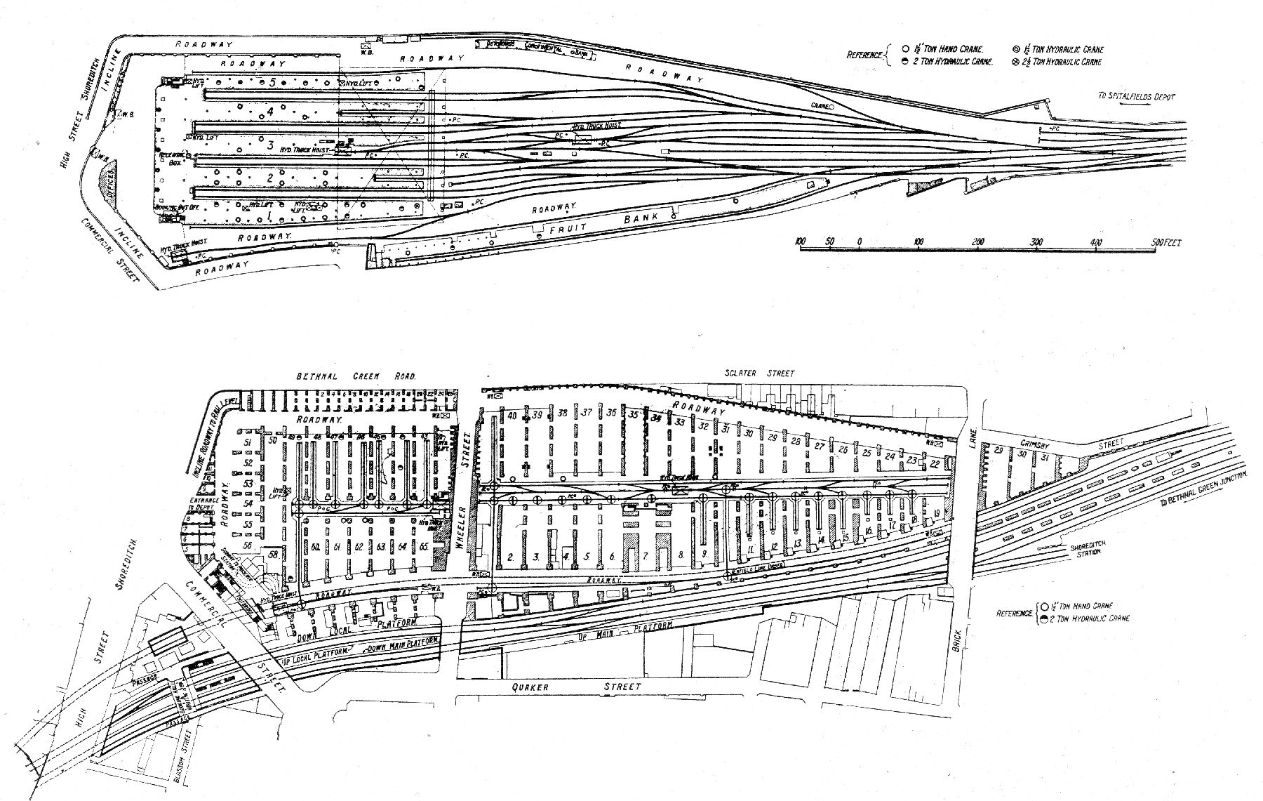Plan of Bishopsgate goods station upper and lower levels and Bishopsgate Low Level station.
