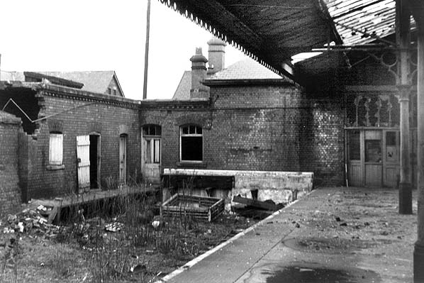 ![]() The east end of Blyth station c1968. The head of the north face of the island platform retains its buildings and roofing, but the tracks have been removed.