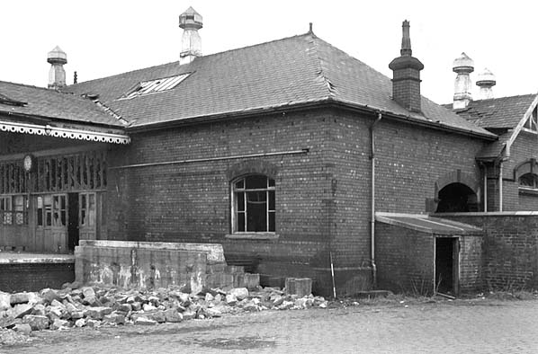 The south end of Blyth station building seen frrom the goods yard c1968.