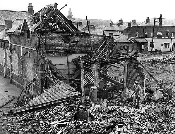 ![]() Demolition of the station building is underway in 1972. The gable which formerly housed the clock on the station’s façade appears to be next in line for the contractor’s attention.