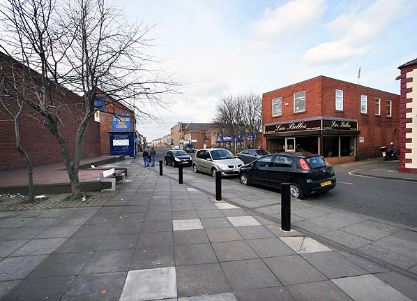 ![]() Looking north along Turner Street in March 2009. The station was to the left. Beyond the station there was a bridge across the road taking the line on to the docks. The first Blyth station was to the right of Turner Street.