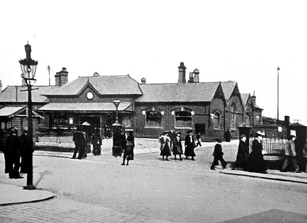 An exterior view of Blyth station c1906. This angle reveals the complex structure of the station building.