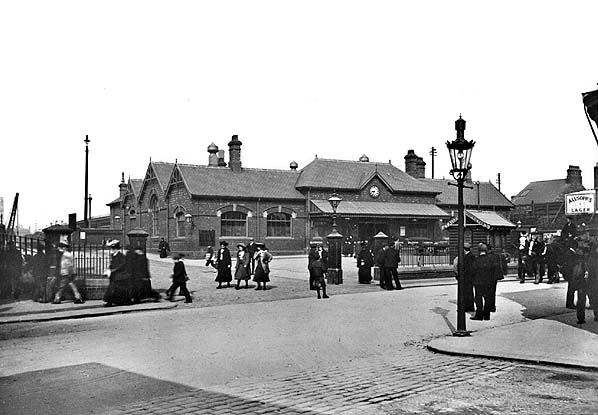 An exterior view of Blyth station c1906. This angle reveals the complex structure of the station building.