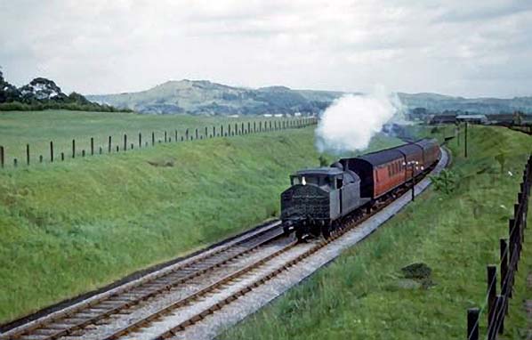 Looking sout-east from the bridge in Holehouse Lane, Whiteley Green, in 1958. Bollington