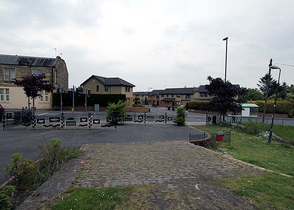 Station Name: BONNYRIGG![]() Bonnyrigg station looking north from the up platform in May 2011. The signal box stood at the bottom of the ramp and the goods yard was on the far side of the crossing.