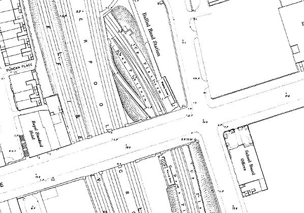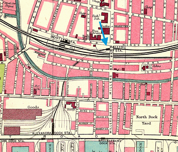 Notes: Bootle Balliol Road was located on the London & North Western Railway’s (LNWR) Alexandra Dock branch which opened on 5 September 1881. The short branch connected the LNWR Canada Dock branch from Atlantic Dock Junction to Alexandra Dock. The Canada Dock branch formed a link between the LNWR Liverpool and Manchester line at Edge Hill to the north Liverpool docks.