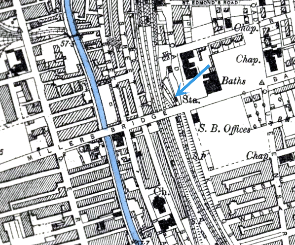 Being situated in a deep cutting with sloping banks and retaining walls the railway was at a much lower elevation than the station building. Passing over the line was Millers Bridge Road, and just to the west was the Lancashire & Yorkshire Railway’s (LYR) Liverpool and Southport line.