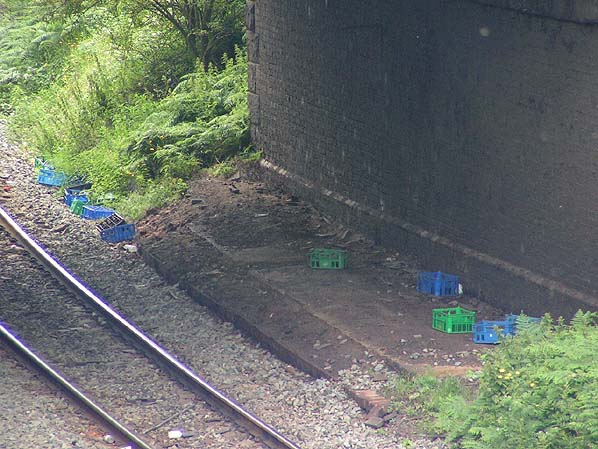 A close up of the remains of the Alexandra Dock direction platform (north) where it has not been covered in vegetation under Balliol Road Bridge. 19.6.2005 Photo by Paul Wright