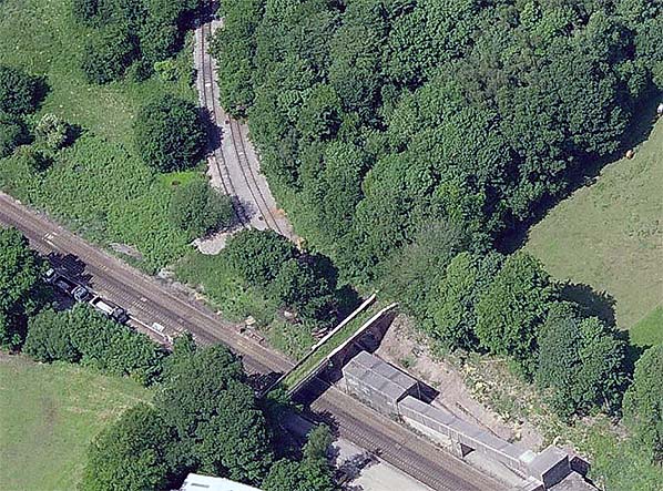 Photo by David Martin, reproduced from Geograph under creative commons licence ![]() A recent aerial view showing the remaining section of the Bishops Waltham branch which has been retained as a long siding be Foster Yeoman.